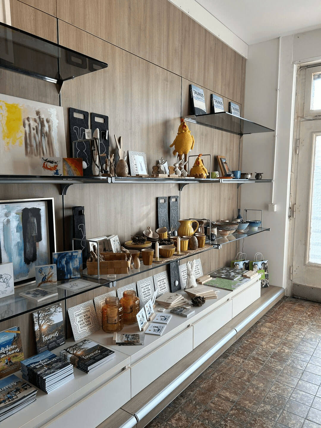 Im Allerlei Laden ist aber auch der erste kompakte Tourist Info Point seiner Art im Taunus beherbergt. In Kooperation mit der Stadt Usingen und der Taunus Touristik Service gibt es Flyer und Informationen für Touristen, Wanderer und Radler über Usingen und die Region. Außerdem gibt es Eis, Kaffee, Getränke und kleine Snacks zu kaufen. Perfekt für den kleinen Stopp auf dem Weg zu den Klippen.